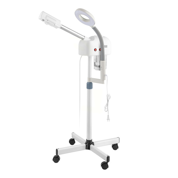 The Facial Steamer is design for beauty salon or personal care use at home. Its sprayer has the function of ozone, so as to speed up skin nutrition absorption. And the ozone also can sterilize and whiten your skin, and improve blood circulation and metabolism. This sprayer also has the effect of moisturizing, water replenishing and keep your skin moist. Height is adjustable , fit for shampoo chair or massage table. A great skin care device for barber shop / beauty salon. With four rolling casters, you can take it around house or studio with no effort.