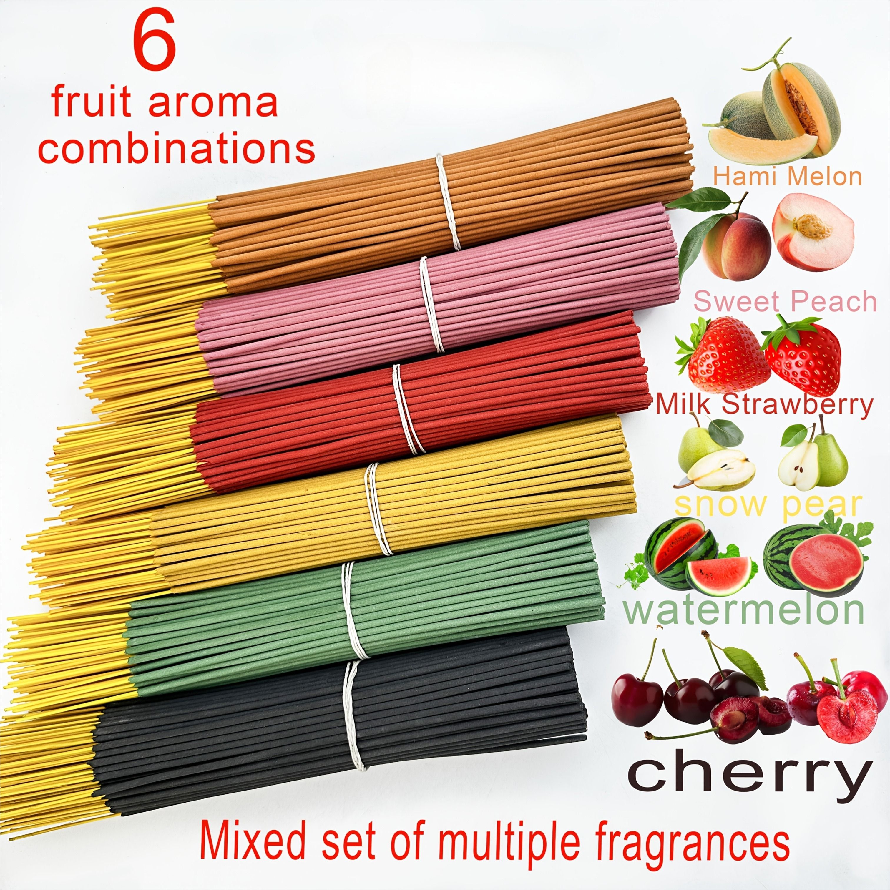 6-Pack of Approximately 120 High-Quality Fruit Scented Sticks - Including Watermelon, Sweet Peach, Cantaloupe, Cherry, Milk Strawberry, Sydney