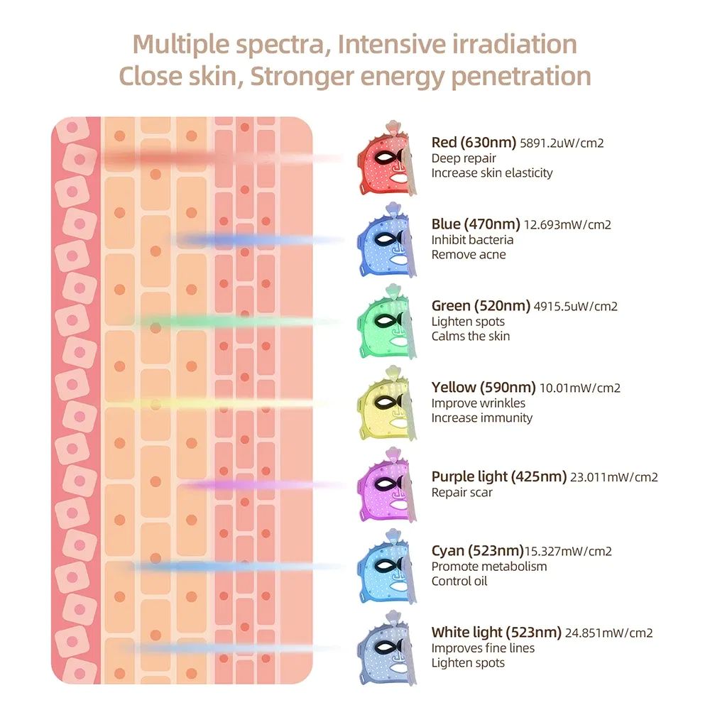 Upgrade your skincare routine with the 7-Color Silicone LED Face Mask, a flexible, lightweight, and non-invasive light therapy device designed to rejuvenate skin from the inside out. Crafted from food-grade liquid silicone, this soft, cordless mask comfortably conforms to all face shapes while delivering targeted LED wavelengths to address multiple skin concerns.