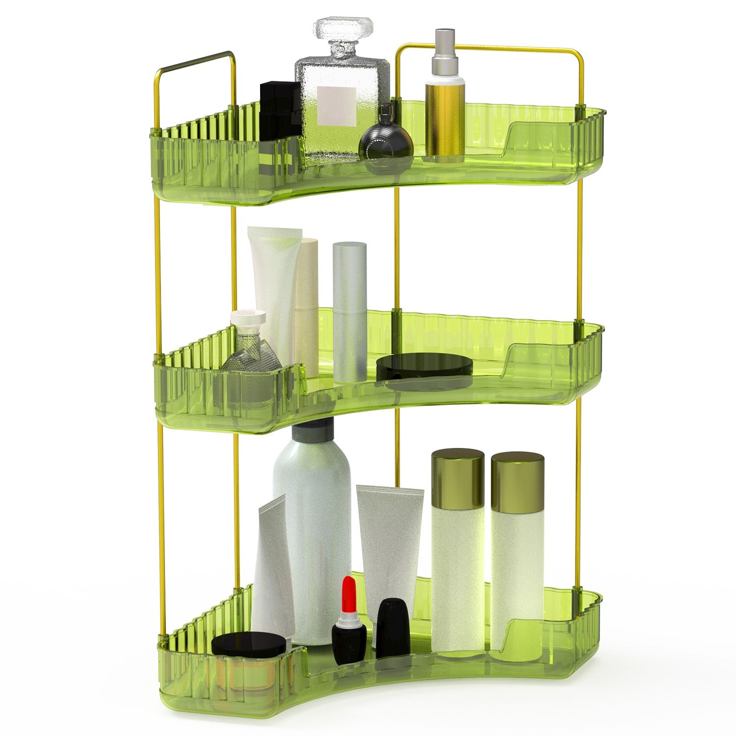 Home > Bathroom Countertop Organizer 3 Tier Corner Makeup Storage Shelf Vanity Cosmetic Perfume Tray Clear Corner Rack for Bedroom Bathroom Kitchen