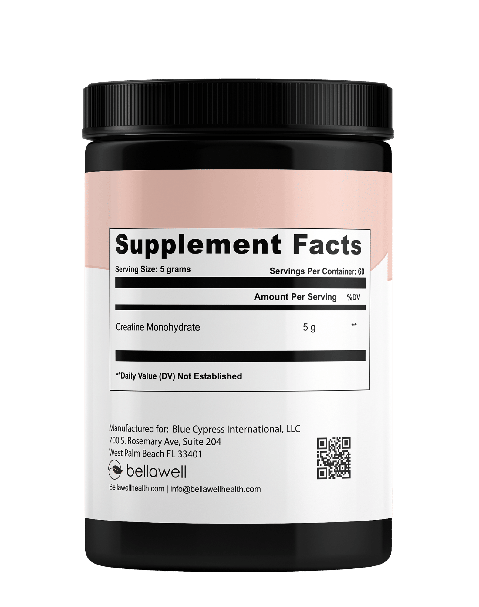 Bellawell Health Creatine Powder is designed to support active women seeking strength, energy, and balance in their wellness journey. This pure, unflavored formula blends easily into smoothies, shakes, or your favorite beverage. Ideal for daily use, it fits seamlessly into fitness and wellness routines. Creatine supports improved workout performance and helps promote muscle recovery after exercise. Feel more energized during your workouts and empowered in your day-to-day activities. Bellawell's formula is vegan, gluten-free, and third-party tested for quality you can trust.