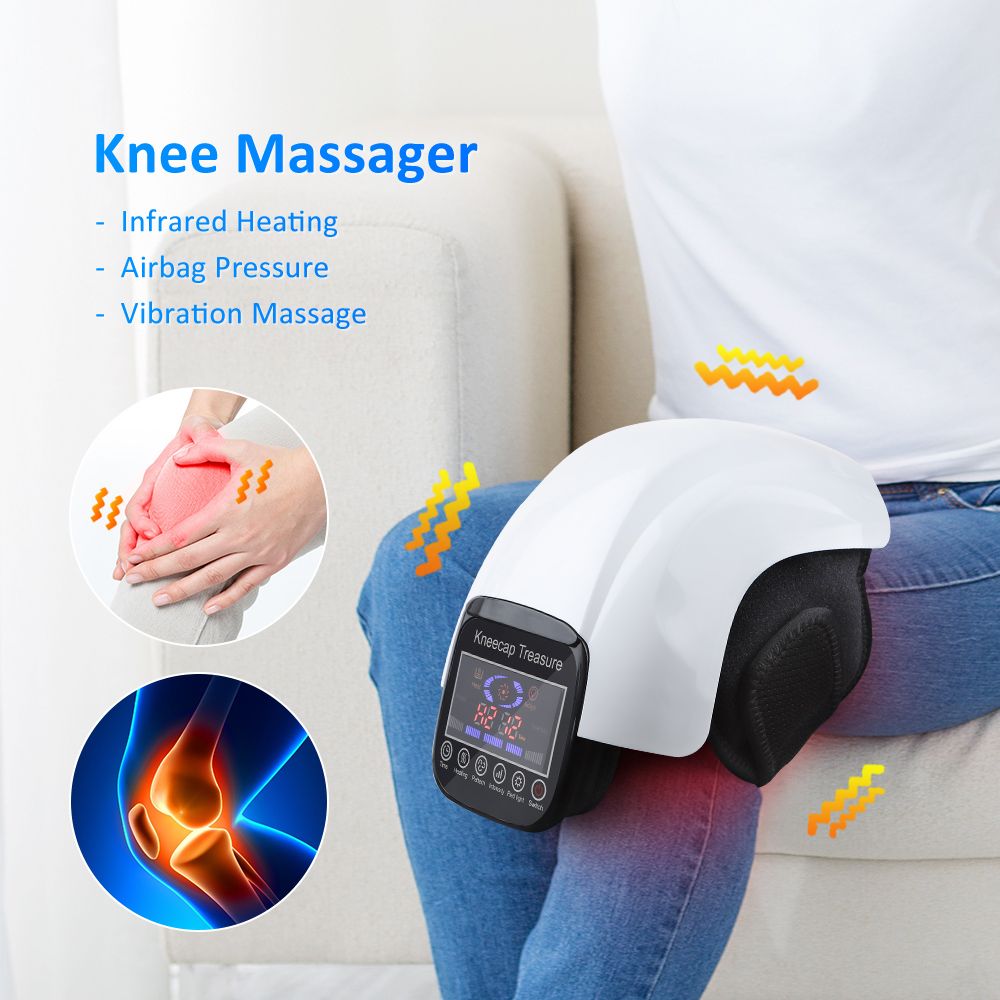 Type A-LCD Touch ScreenFeatures1.The massager has fully enveloping airbags (inner side and straps) to squeeze, cyclically inflate and deflate, allowing knees to enjoy air pressure relaxing massage;2.There are built-in 20 pieces red light physiotherapy lamp beads, specific wavelength far red inner and outer bands penetrate into the knee, to relieve knee fatigue and discomfort;3.Through vibration, the device can repair and massage the muscles of the knee area to relieve the pressure and let it fully relax;4.Three heating modes: low range: 45℃±3℃ (relieving knee tingling), medium range: 50℃±3℃ (releasing knee tingling), high grade: 55 ℃±3℃(Relieve walking pain).5.Intelligent timing design: you are free to choose 15 minutes/20 minutes/25 minutes/30 minutes.6.One-key start, large screen display, wireless use, simple touch interface, can also be used by the elderly;7.It is USB chargeable, with a built-in 2000mah lithium battery, it usually gets fully charged in two hours (related to the power of the charging plug), the normal use time is five to six hours (different depending on the use mode).SpecificationsMaterial: ABS