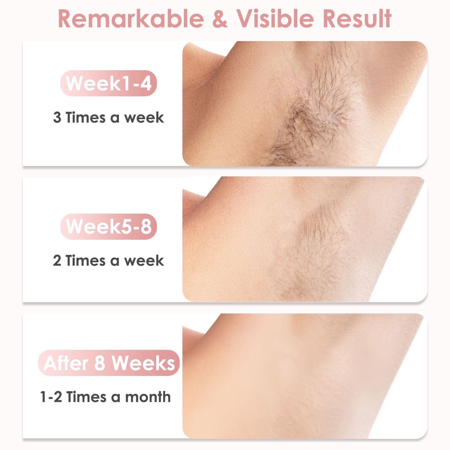 *Long Lasting 999,999 Flashes*:Equipped with upgraded 999,999 flashes,this ice-cooling hair removal provides long lasting uses,this ice-cooling hair removal device offers long-lasting use,making it suitable for sharing with the entire family or friends. The significant and visible hair reduction result can be shown off in 3 weeks. Summer is coming,our economical laser hair removal device is sure to bring you a confident and hair-free beach vacation.