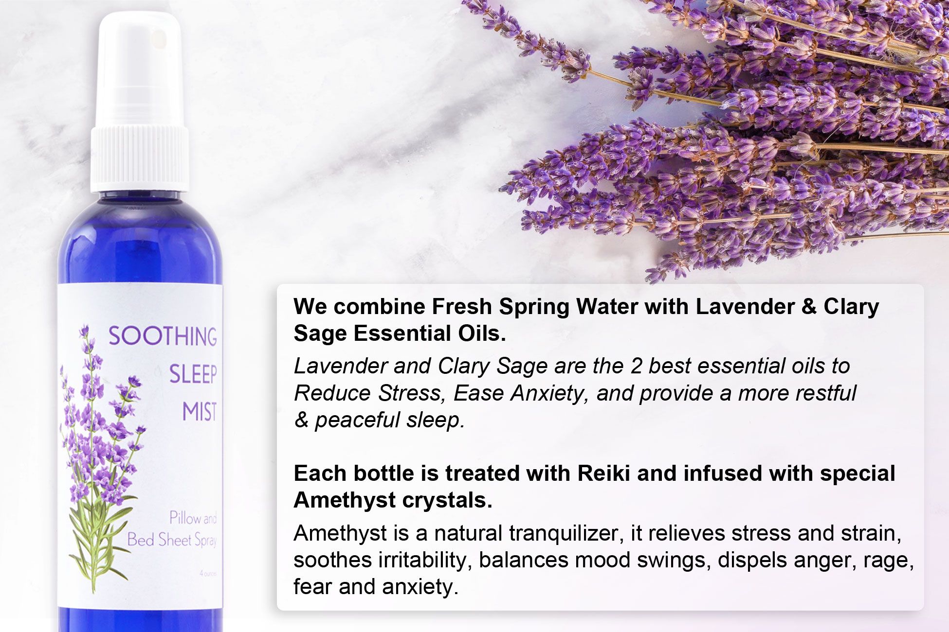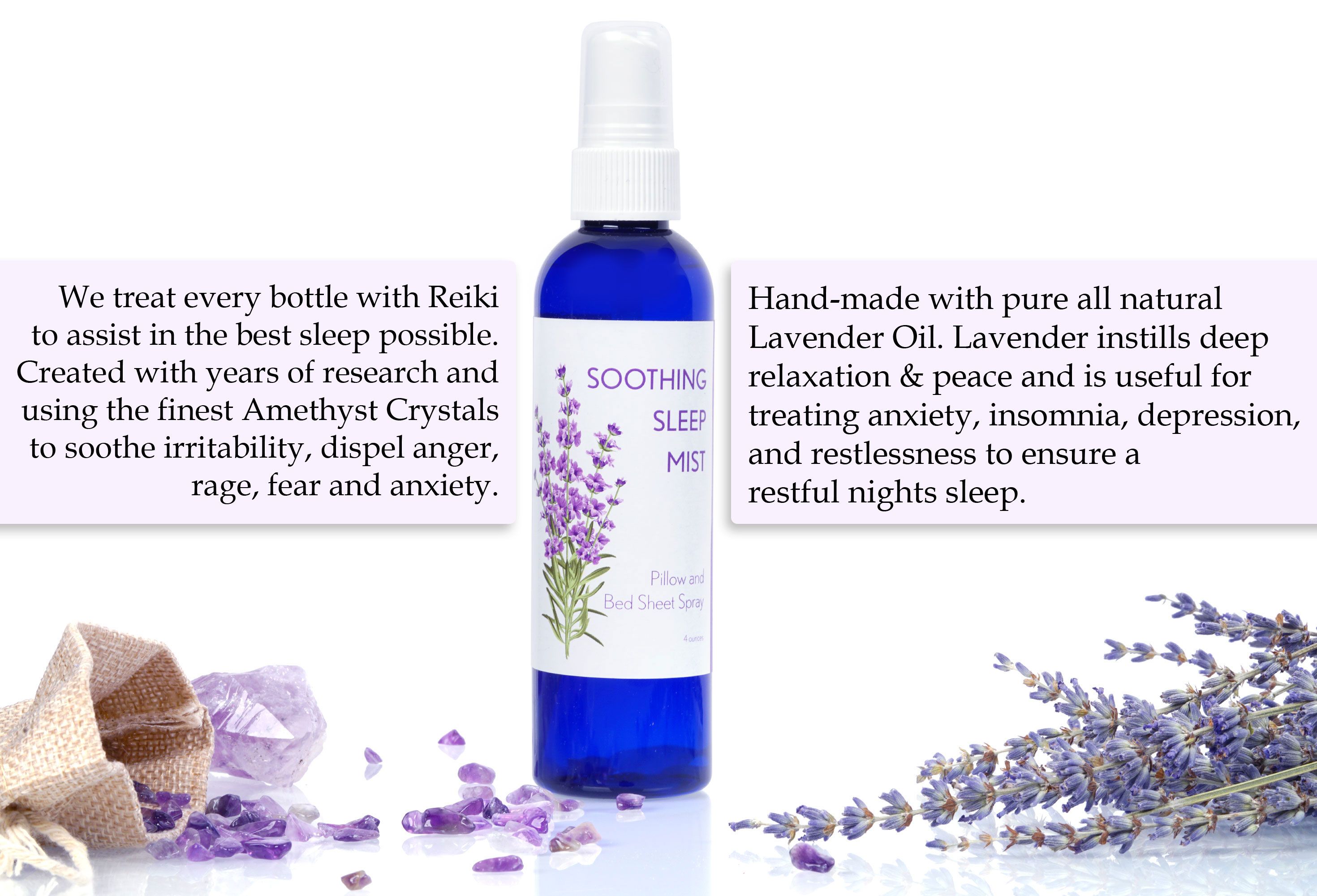 1.Lavender Linen Spray For Sheets: Our hand-crafted Soothing Sleep Mist contains beneficial Lavender based and complimenting Essential Oils, Amethyst crystals and is Reiki treated for your best nights sleep ever.