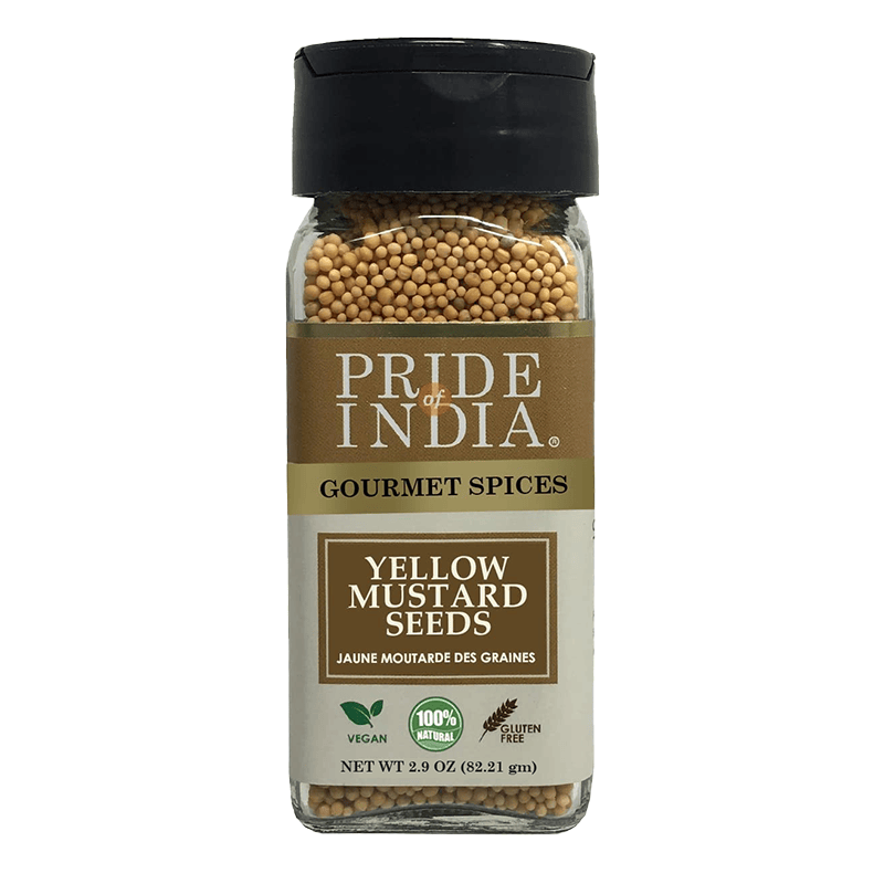 Pride of India Yellow Mustard Whole Seeds are pure and 100% natural that are sustainably sourced from small farms and processed minimally to ensure full flavor and taste when you add them to various dishes. Its medium, pungent and spicy flavor makes it an ideal ingredient in various foods like pickles, preserves, meat, chicken, salad dressing, and also seafood. It is also packed with nutrients like calcium, iron, and dietary fiber that add to a healthy body. This recipe-ready bottle is a must-have in every pantry. It is available in a dual sifter bottle for ease of use and fits in your pantry without taking up too much space.