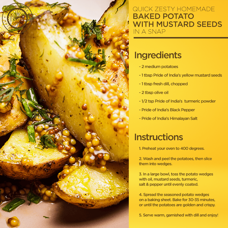 Distinctive Tang Enjoy the unique combination of mild heat and tanginess of Yellow Mustard Seeds, adding a bold, zesty flavor to everything from sauces to stir-fries. | Pickling Essential Ideal for making pickles, these seeds provide a classic tangy kick and crunchy texture, essential for traditional pickling recipes. | Taste Enhancement Yellow Mustard Seeds boosts flavor by releasing aromatic oils and adding a distinctive, savory touch when toasted, enriching a variety of dishes. | Long-Lasting Freshness Yellow Mustard Seed Whole retains its potent flavor and aroma over time, ensuring long-lasting freshness and consistent quality in every use. |
