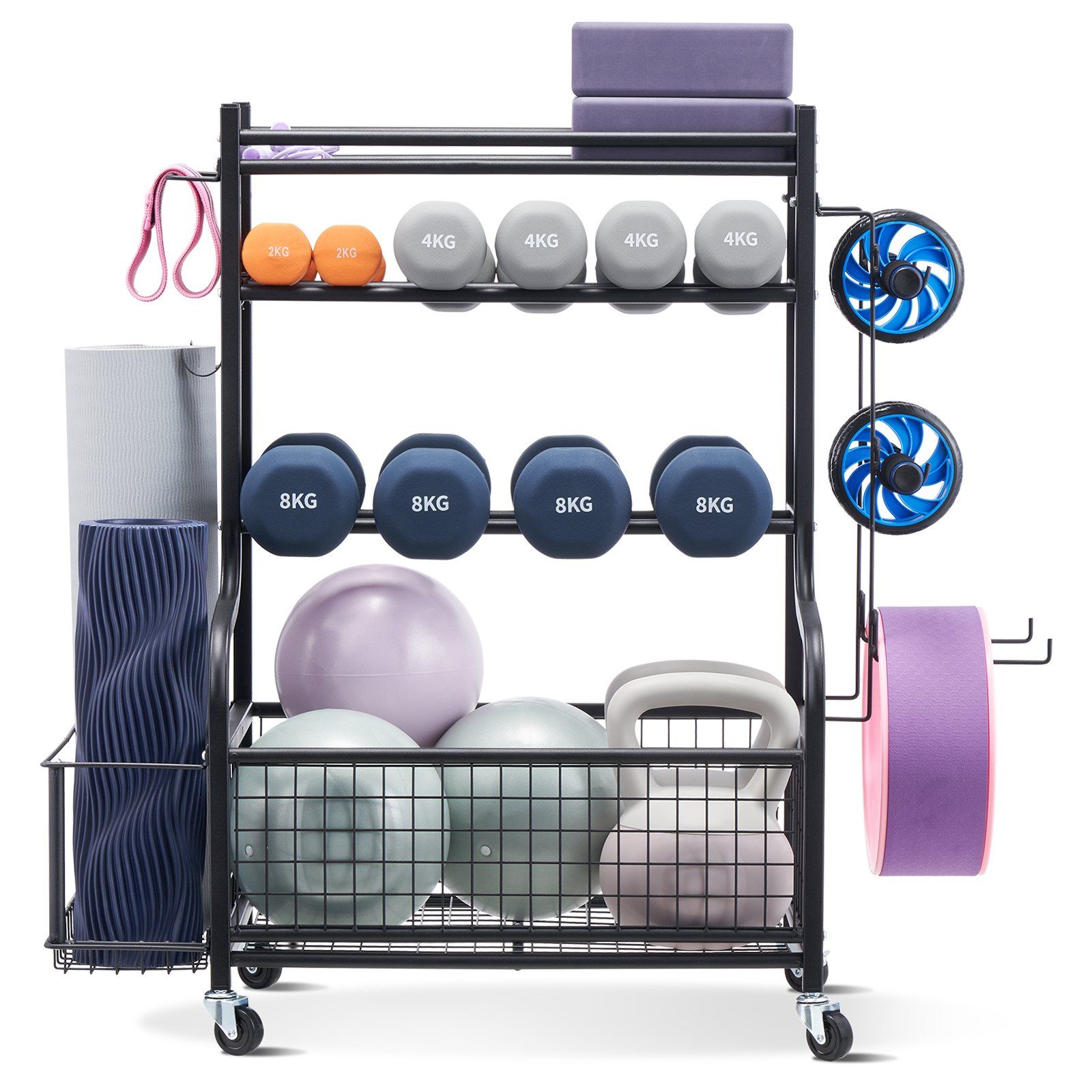 5.Suitable for Various Settings: This all in one home exercise and fitness gear rack is perfect for organizing items in gyms, schools, and any sports venue, effortlessly keeping your space neat and orderly