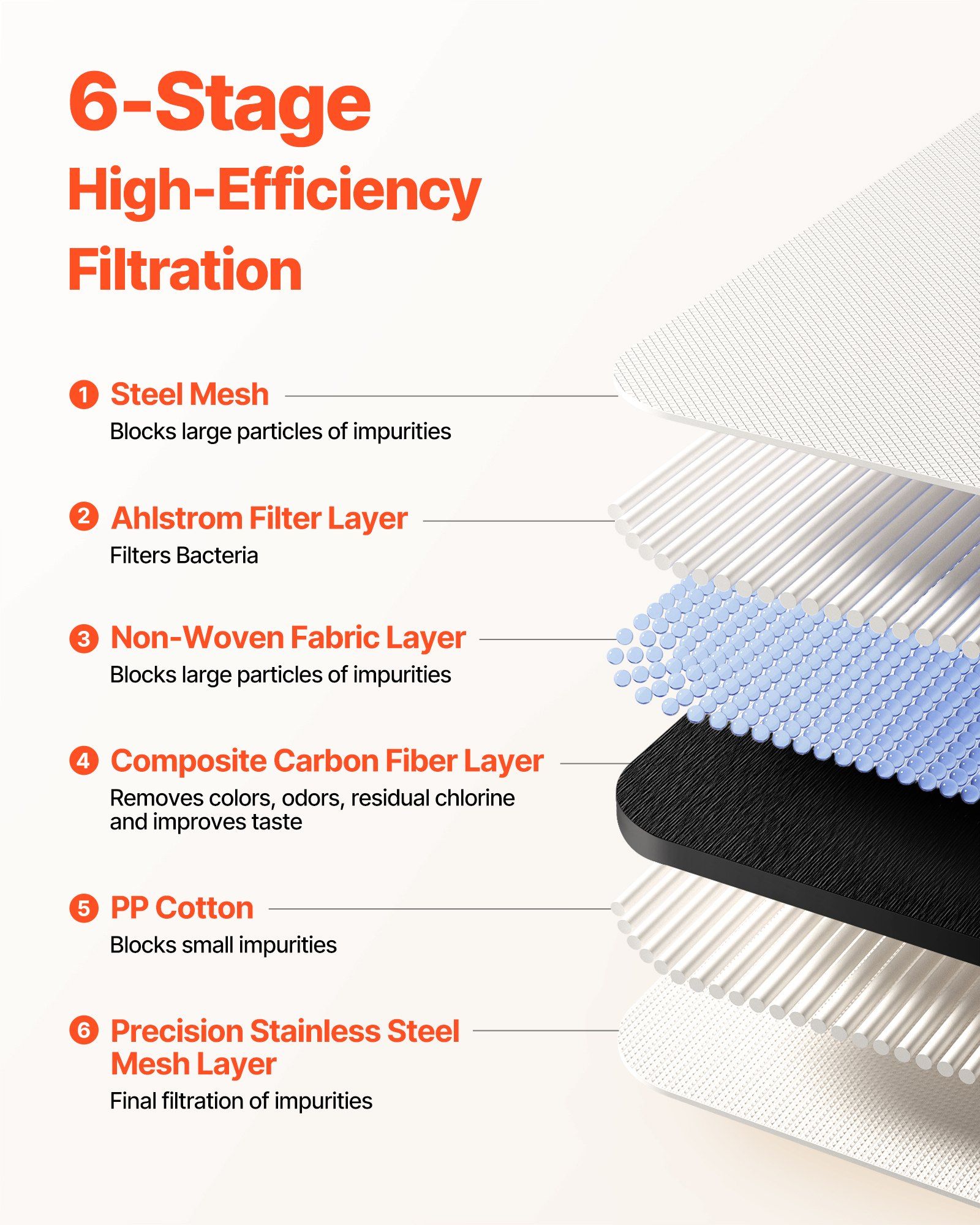 Equipped with carbon fiber and high quality filter, the skincare sink filter removes 95% of chlorine and chloramine and effectively filters out impurities as small as 0.01 microns.
