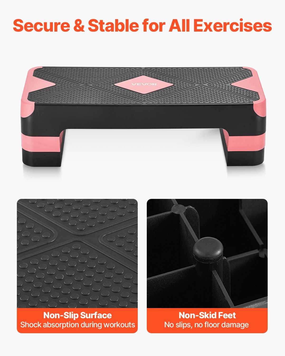 2.Non-Slip Surface: Textured grooves of this step platform trainer keep you steady during HIIT or rehab sessions, while non-skid rubber feet guard floors from scratches