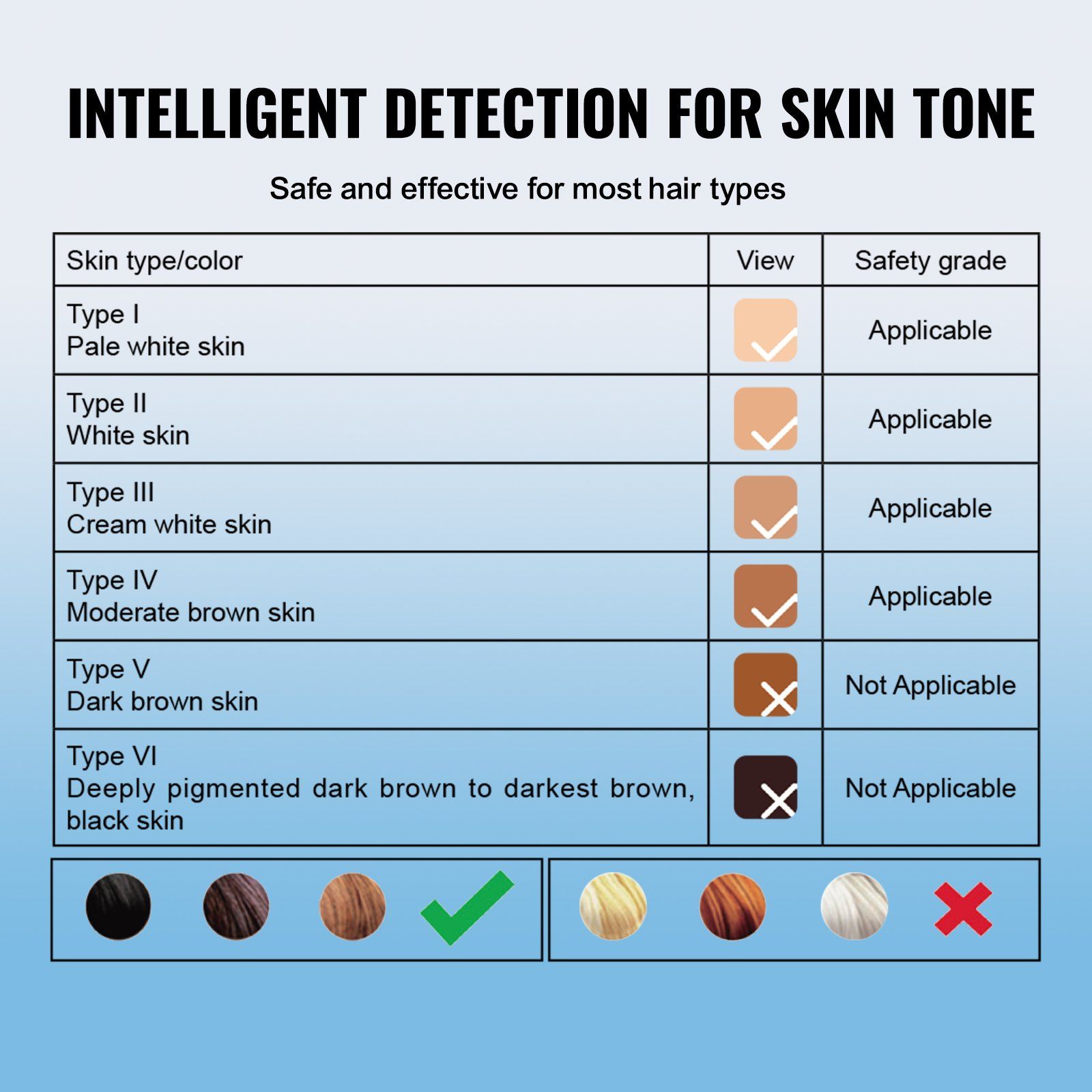 3.Upgraded 3-in-1 Mode: VEVOR IPL permanent hair remover boasts intelligent detection for skin tone, safe and effective for most hair types. Get silky-smooth skin at home with the 3-in-1 upgraded mode: HR (Hair Removal), SC ( Skin Rejuvenation), RA ( Acne Removal). With 400,000 impressive flash times, it's more than enough to meet your entire family needs.
